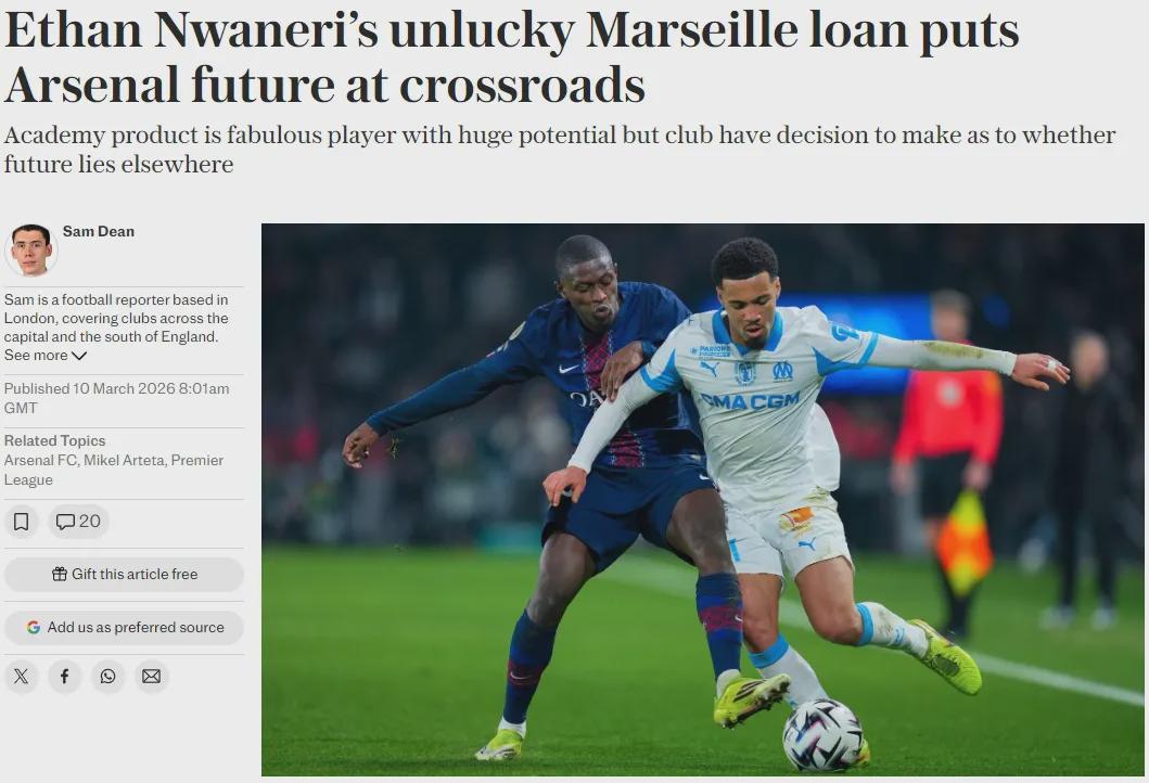 枪迷担心的是,恩瓦内里可能会被阿森纳舍弃,而复杂的租借情况只会让人更加感觉他可能正朝着错误的方向发展。而去年此时,恩瓦内里(在伤病危机中)是阿尔特塔球队的重要组成部分,在2024-25赛季结束时,这名未来之星在所有比赛中以9粒进球的成绩令人印象深刻,其中不少进球都是远射中的精彩表现。
